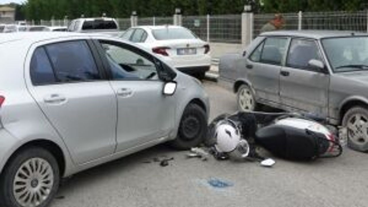 Antalya Manavgat'ta otomobille çarpışan motosikletin sürücüsü yaralandı. Güvenlik kamerasına yansıyan kazada, çarpmanın şiddetiyle başını otomobilin camına çarpan sürücüyü başındaki kask kurtardı.-İHA