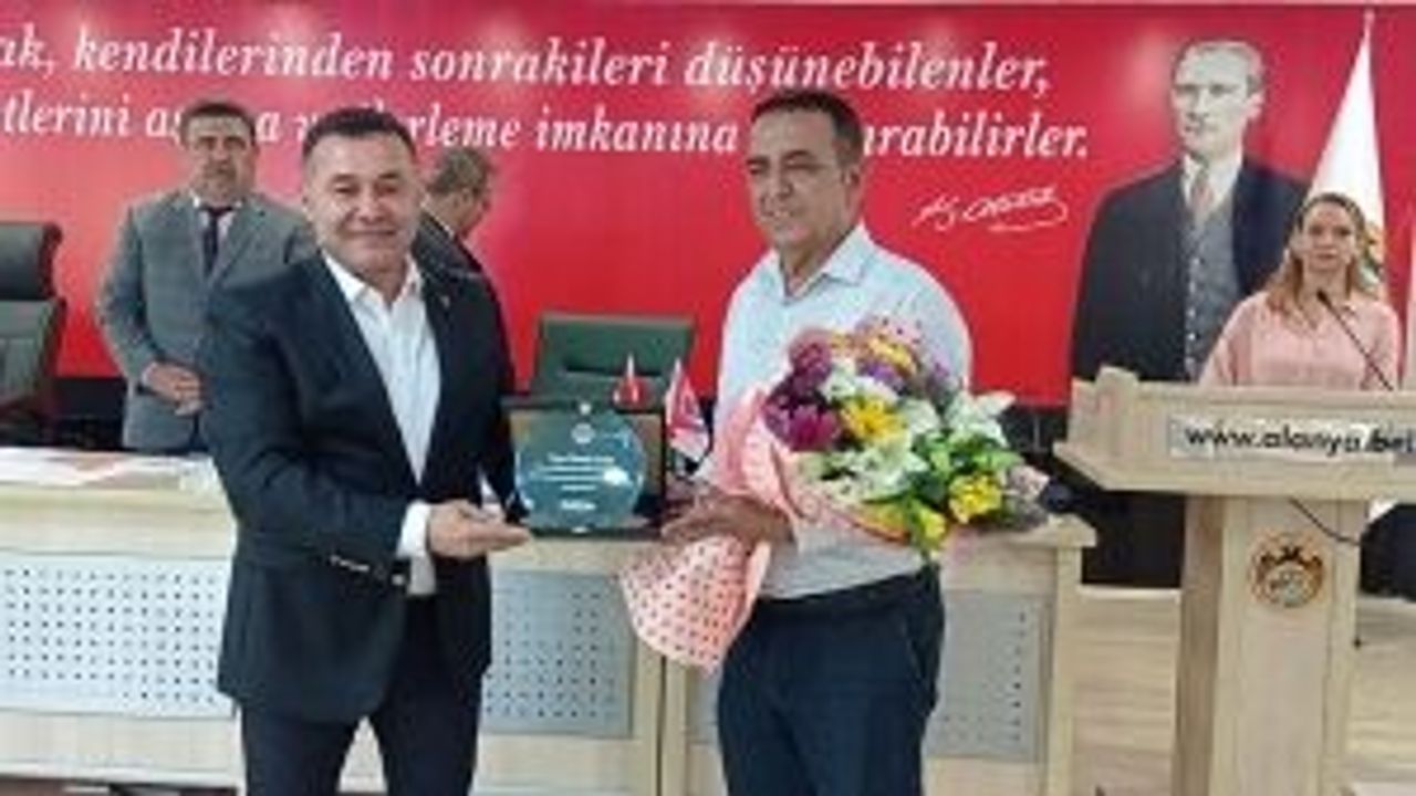 Alanya Belediye Başkanı Adem Murat Yücel, Belediye Meclis üyeliğinden istifa eden Mustafa Sünbül'e plaket takdim etti. İstifa eden Sünbül'ün...