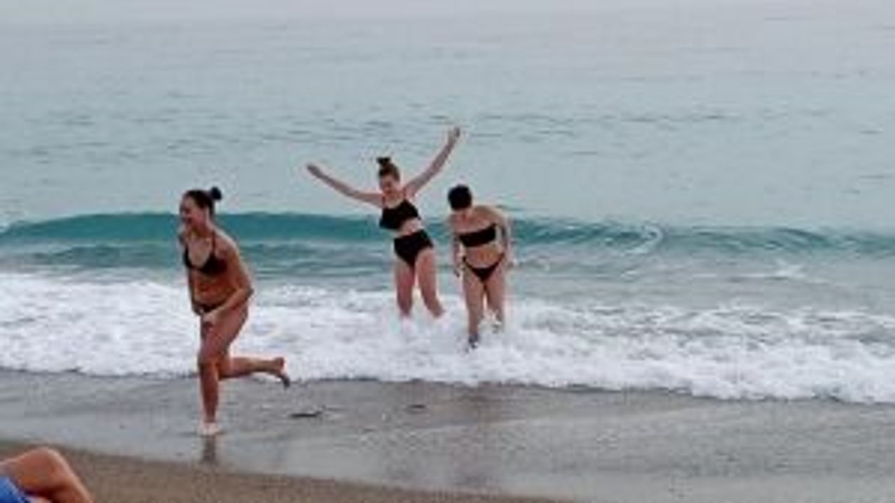 Antalya’nın Manavgat ilçesinde güzel havayı fırsat bilen yabancı turistler, Ocak ayında denizin tadını çıkardı.