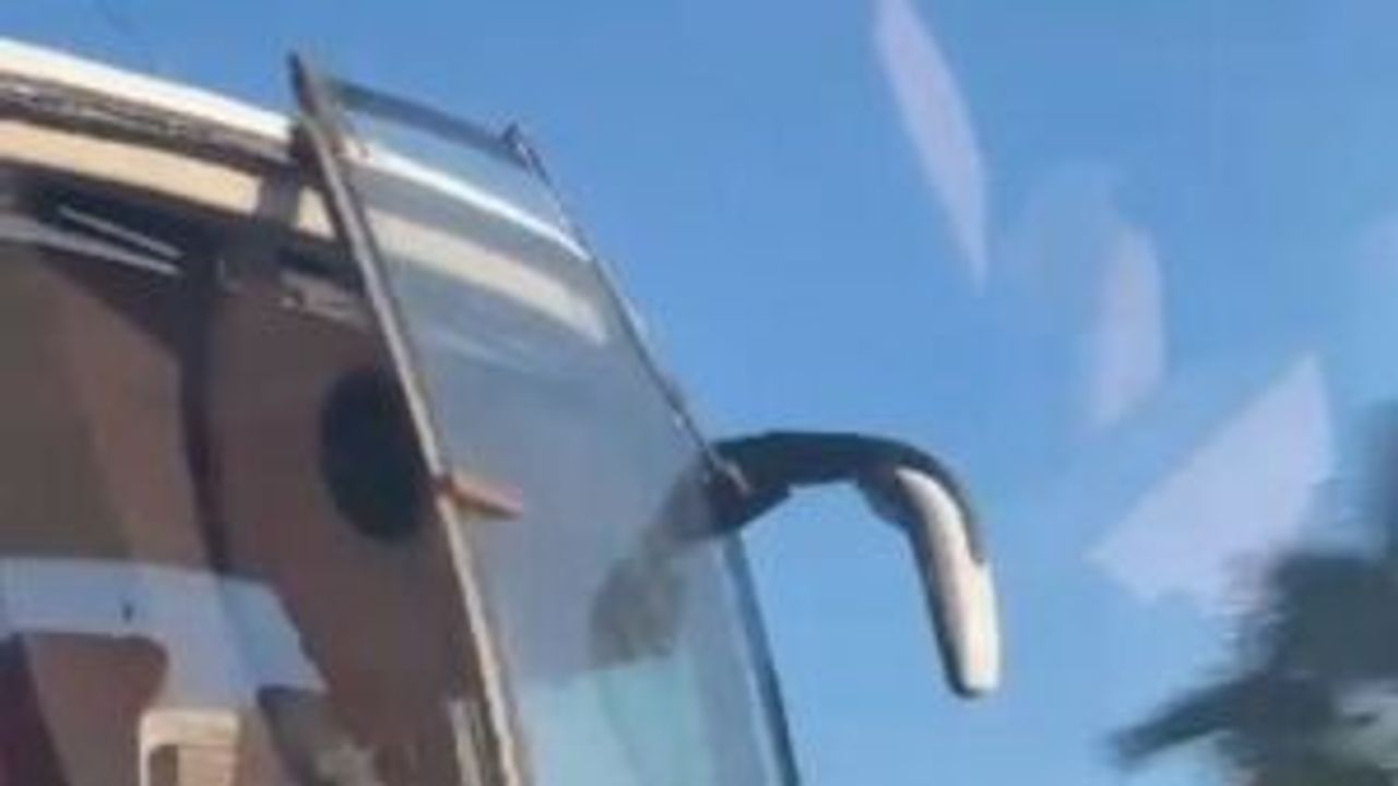 Antalya’da kaza sonrası ön kısmı paramparça olan yolcu otobüsüyle trafiğe çıkan sürücü, görenleri hayrete düşürdü. Bir yandan cep telefonuyla konuşan sürücünün o anları diğer sürücülerin cep telefonu kamerasına yansıdı. O...