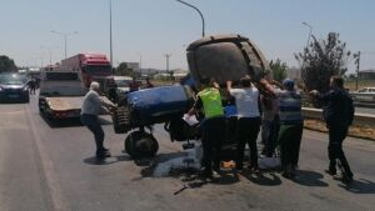 Manavgat'ta traktörle otomobilin çarpıştığı kazada 4 kişi yaralandı. Devrilen traktörün altında kalan sürücü vatandaşlar tarafından çıkarılırken, yoldaki yağın üzerine dubalarla kum döküldü.- İHA